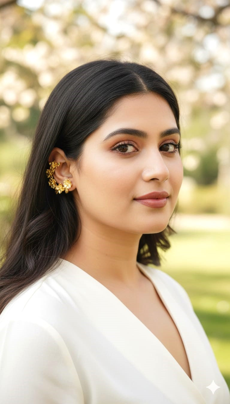 Ideal for casual outings, brunch dates, office wear, festive gatherings, and Indo-western styling, the Elegant Gold Finish Floral Ear Cuff Earrings for Women pair beautifully with dresses, kurtis, sarees, and fusion outfits. Lightweight and comfortable, they are designed for all-day wear while adding a touch of refined sophistication.
