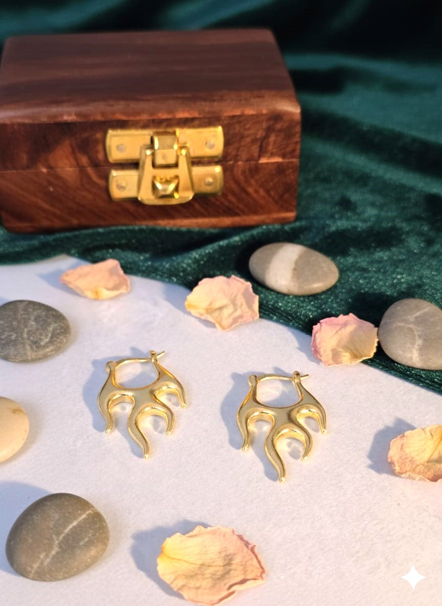 Gold Abstract Flame Hoop Earrings in Brass | Modern Statement Hoops by RavJyoti