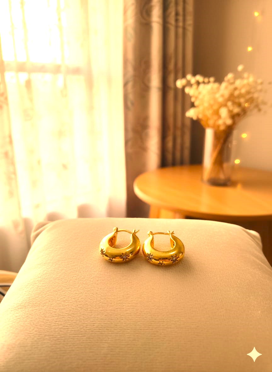 Crafted from premium-quality brass, the Gold Finish Star Detail Hoop Earrings are lightweight, durable, and comfortable for all-day wear. Their compact yet stylish design makes them perfect for daily use, office wear, casual outings, and even evening looks when you want something simple yet classy.