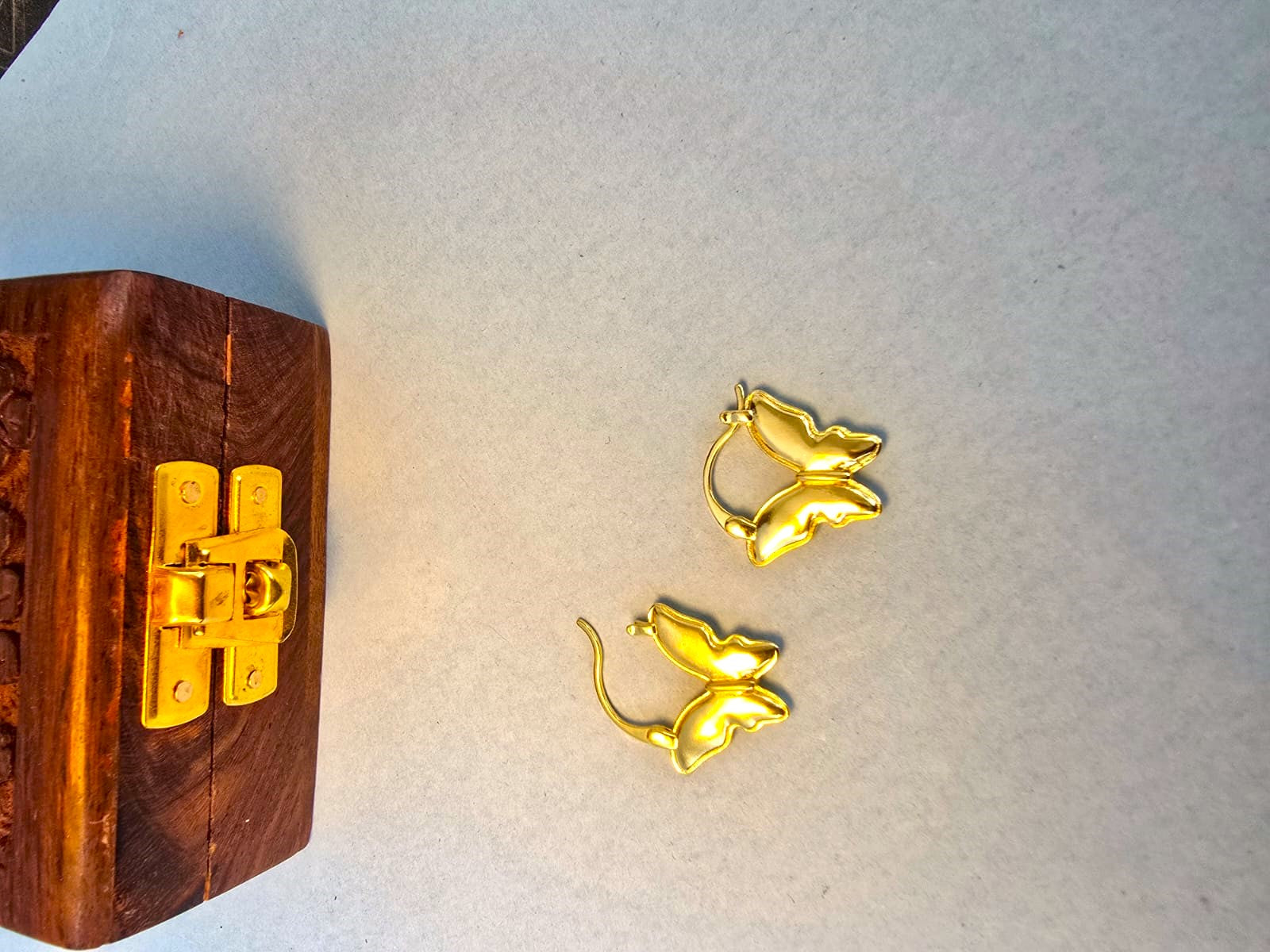 Golden Butterfly Hoop Earrings in Brass | Lightweight Statement Hoops by RavJyoti