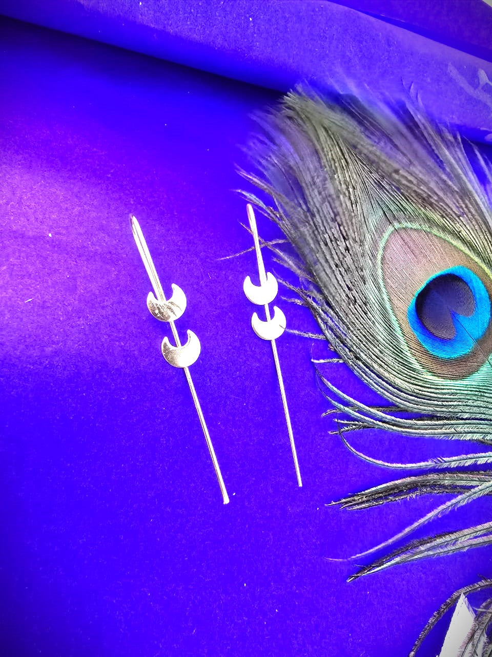 ✨ Design: Crescent moon ear cuff / ear climber with long stick drop