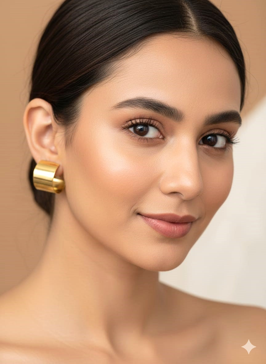 Shop bold minimal gold-finish brass stud earrings by RavJyoti. Lightweight, modern & perfect for everyday, office, and chic styling.