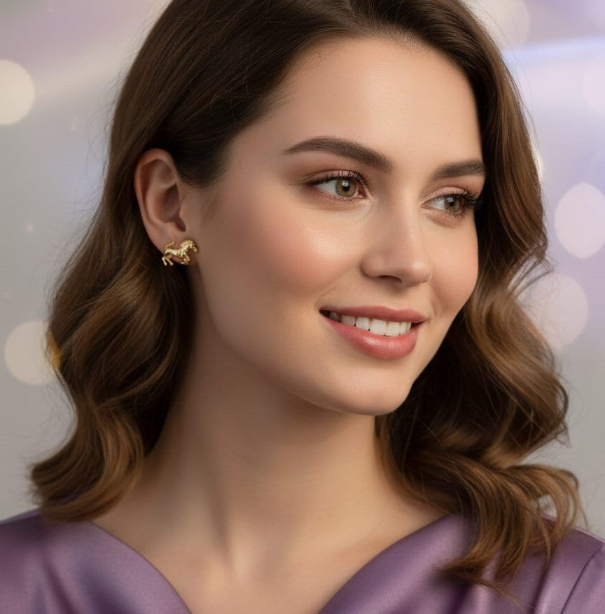 Add a touch of strength and elegance to your jewellery collection with these Minimal Gold Horse Stud Earrings from RavJyoti. Inspired by the horse—a timeless symbol of power, freedom, confidence, and success—these earrings are designed for women who love meaningful yet minimal accessories.