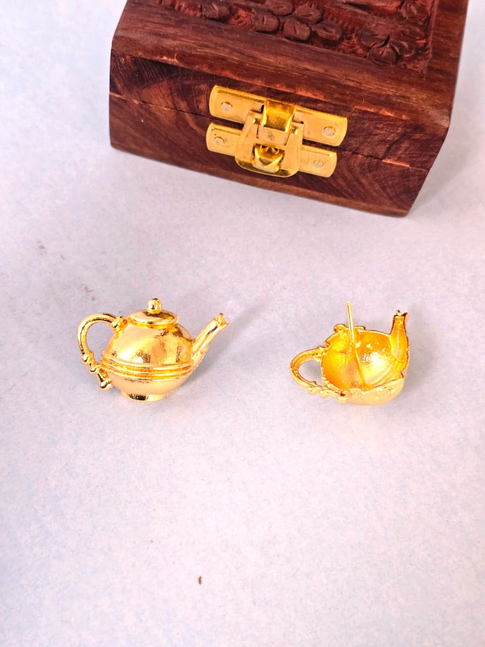 Minimal Gold Teapot Stud Earrings for Women | Lightweight Brass Daily Wear Earrings